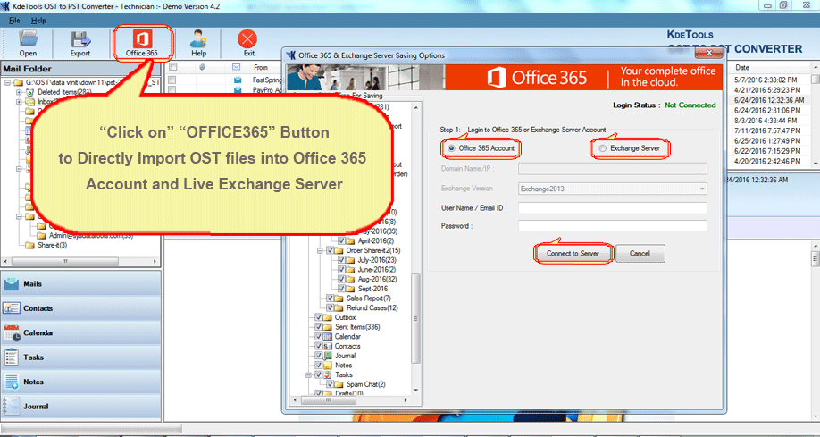{Steps-5} - Pour exporter le fichier OST vers un serveur Cloud Office 365 et Exchange, cliquez sur l'option "Office365" dans la barre d'outils.