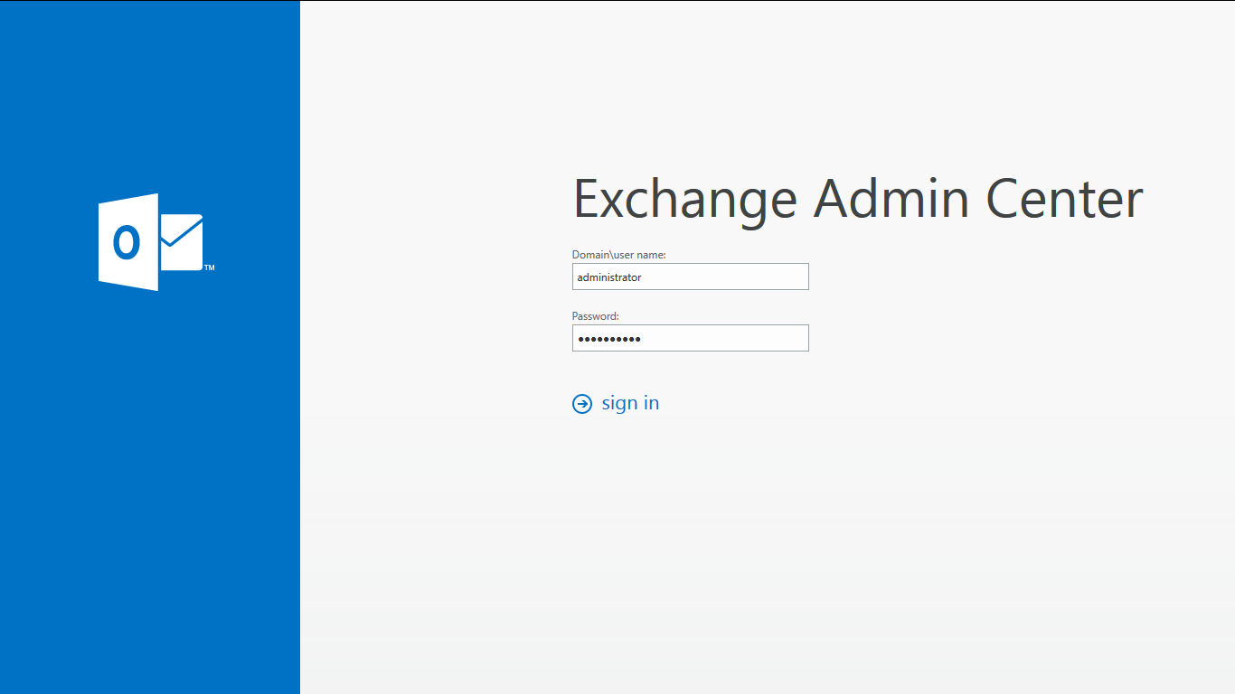 Go to Exchange Admin Centre - Enter your Exchange "Admin" login details to Sign in [Admin Accounts].