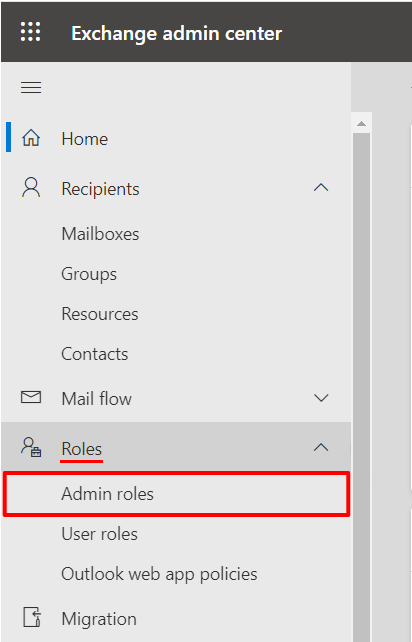 Login to your "Microsoft Office 365 Admin account" from https://www.office.com/ and go to Exchange Admin Centre (Under Admin » Exchange) » Roles » Admin Roles.