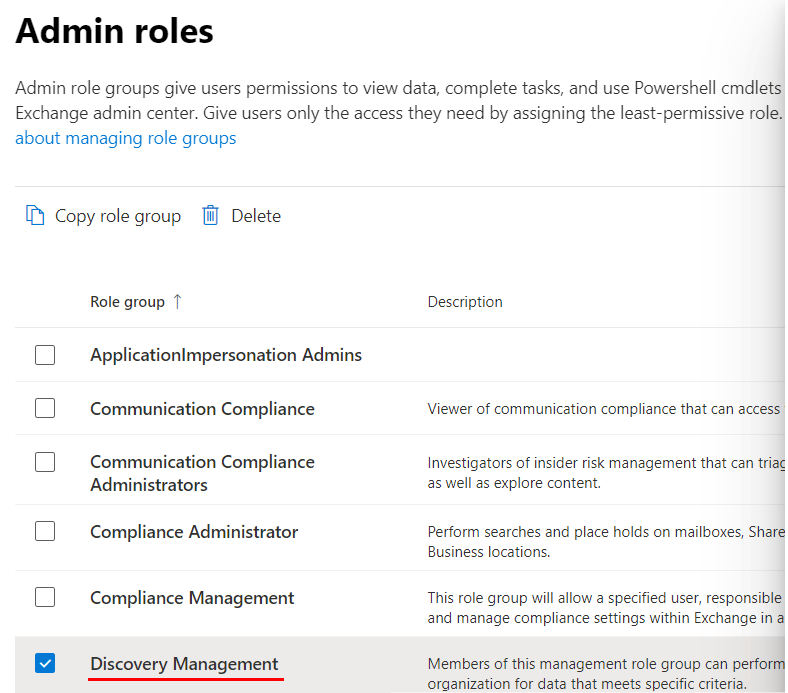 Go to "Admin Roles," Section and Click on the “Discovery Management” from the Role Group list.