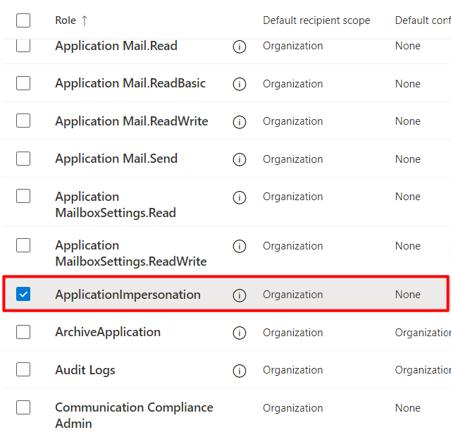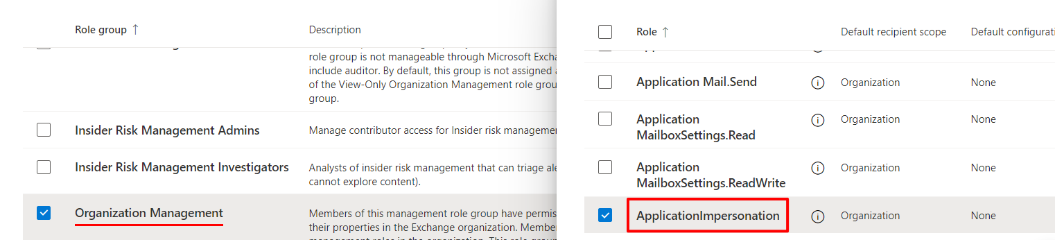 You need to do the same changes as Discovery Management. Go to “Permissions” under Organization Management and add “Application Impersonation” role.